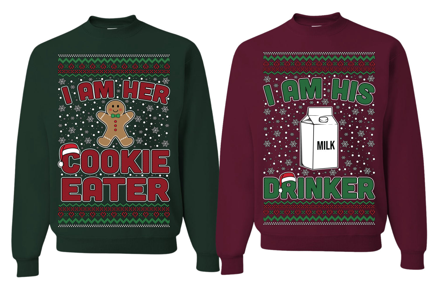 Cookie Eater, Milk Drinker Funny Couples Sweatshirt Ugly Christmas Matching Couple Crewneck Sweater Crewneck Sweatshirt