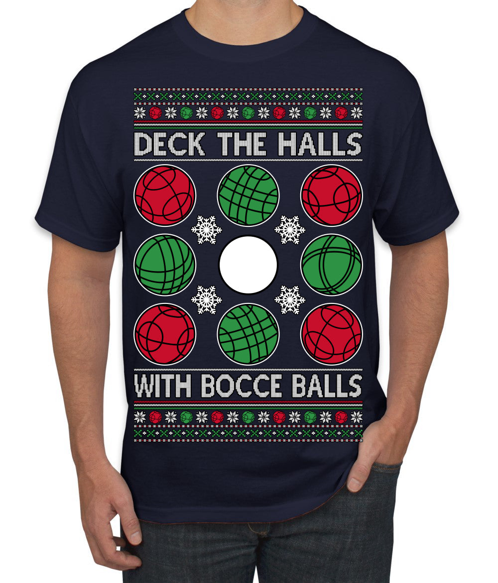 Deck the Halls with Bocce Balls, Funny Classic Italy Italian Sports Ugly Christmas Sweater Men's T-Shirt