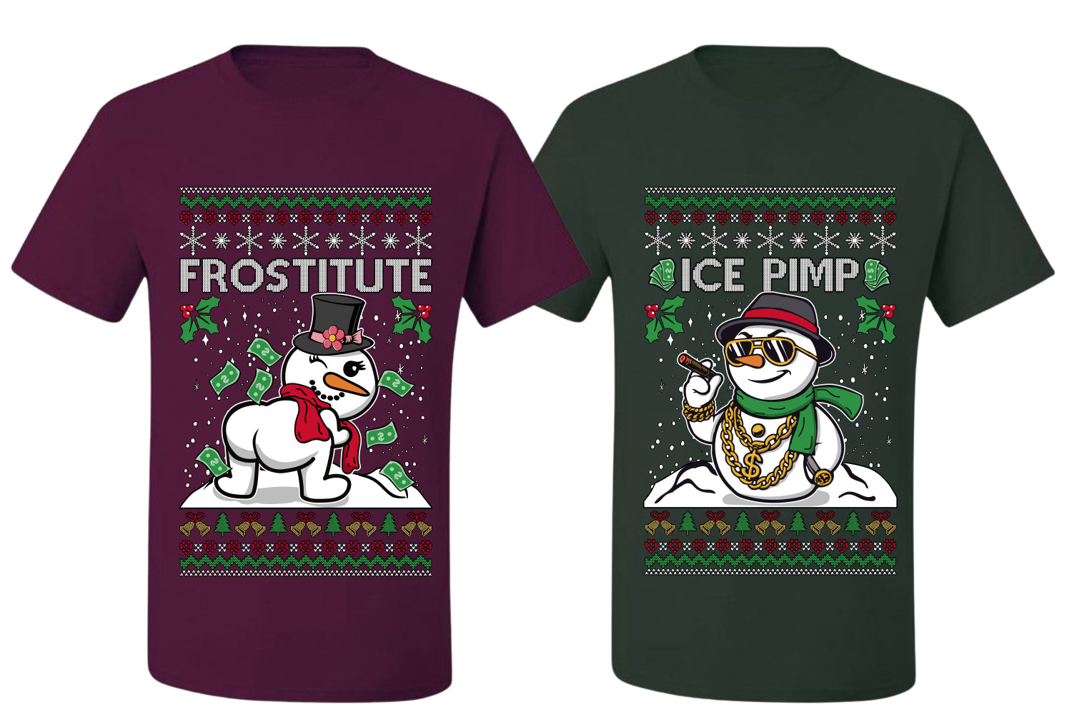 Frostitute Ice Pimp Snowmen Sweater Girlfriend Boyfriend Gift His and Hers Matching Ugly Christmas Couple T-Shirt