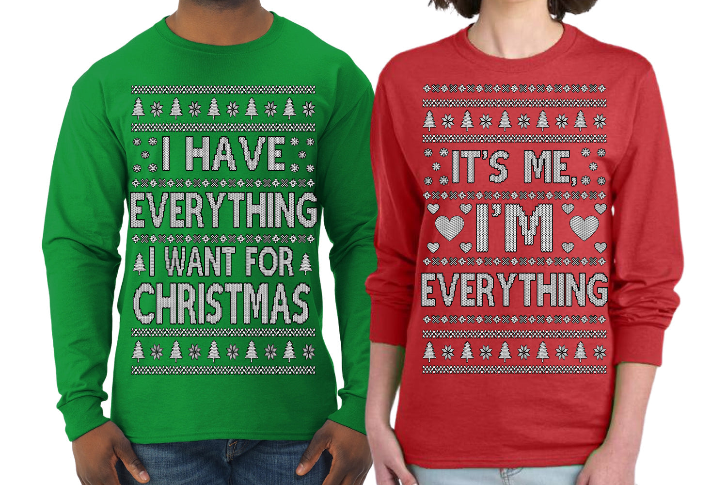 I Have Everything I Want for Christmas I'm Everything Couple Shirt Girlfriend Boyfriend Gift His and Hers Matching Ugly Christmas Couple Long Sleeve Shirt