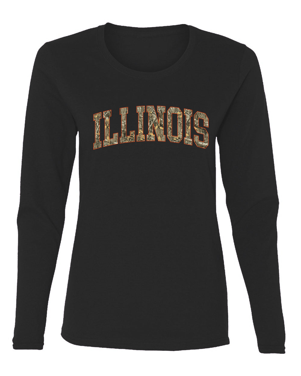Illinois Camo Fill Orange Outline Sweater, Womens Graphic Long Sleeve T-Shirt