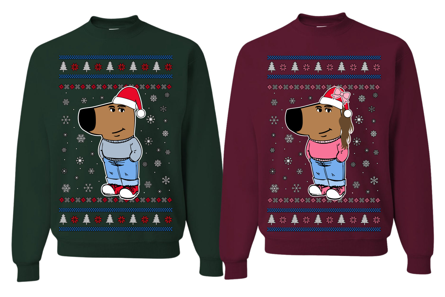 I'm Just a Chill Guy, Chil Girl, My New Character, Santa Dog Viral Meme Coin CHILLGUY CHILLGIRL Funny Internet Memes Girlfriend Boyfriend Gift His and Hers Matching Ugly Christmas Couples Sweater Crewneck Sweatshirt