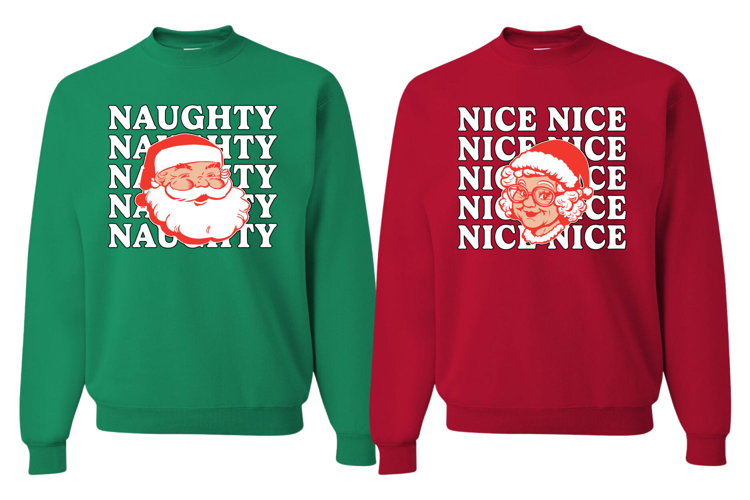 Naughty, Nice Santa Claus Mrs Claus Couples Sweatshirt Ugly Christmas Matching Couple Sweater Crewneck Sweatshirt