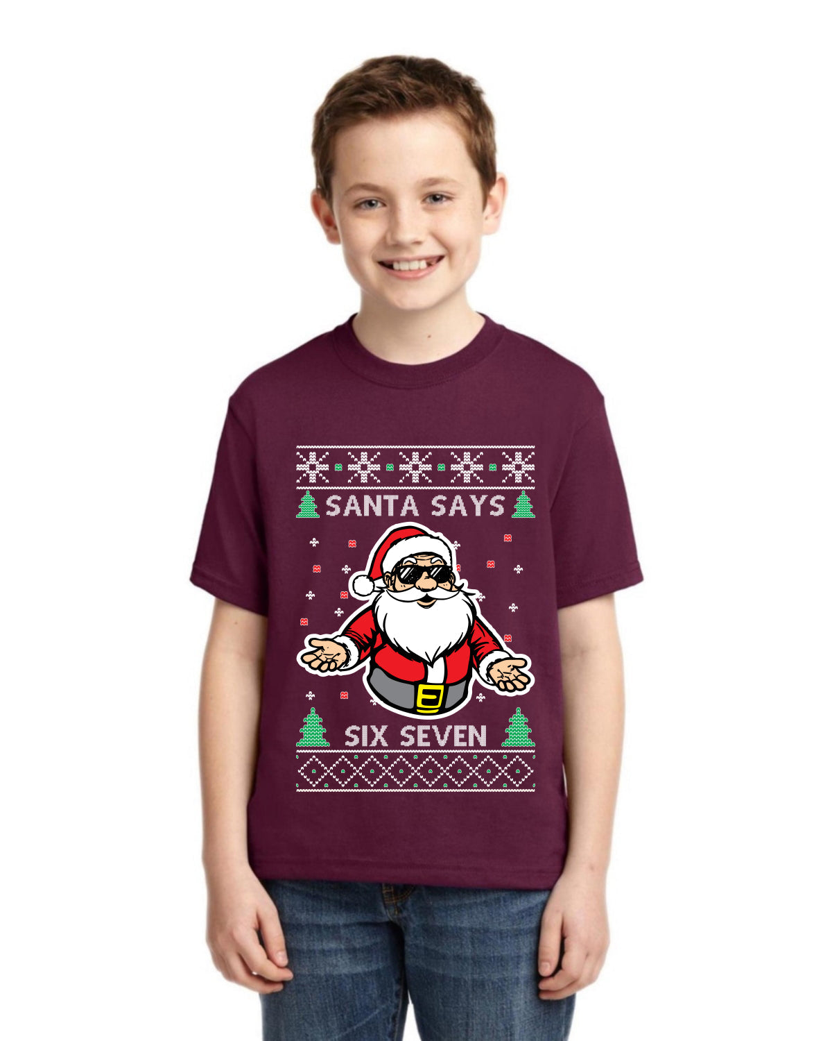Santa Says 6 7 Meme Ugly Christmas Sweater For Kids | Unisex Boys Girls Graphic Youth T-Shirt